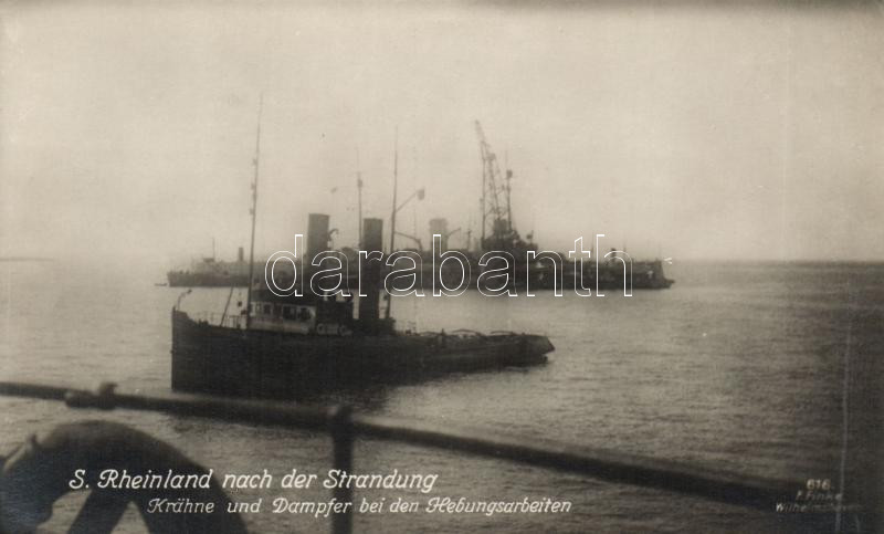 Running aground of SS Rheinland, cranes and steamers https://www.darabanth.com/hu/182-Gyorsarveres/182.0/Kepeslapok/Hajo~400346/Running-aground-of-SS-Rheinland-cranes-and-steamers~II651663