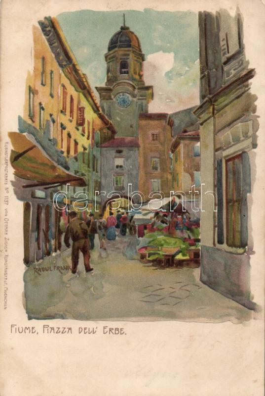 1899 Fiume Piazza delle Erbe litho s: Raoul Frank