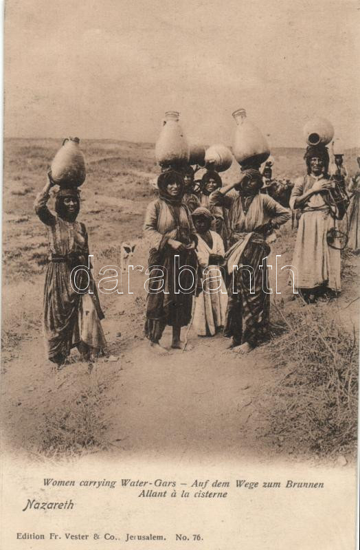 Women carrying Water-Gars in Nazareth, Israeli folklore https://www.darabanth.com/hu/182-Gyorsarveres/182.0/Kepeslapok/Izrael~400351/Women-carrying-Water-Gars-in-Nazareth-Israeli-folklore~II518612