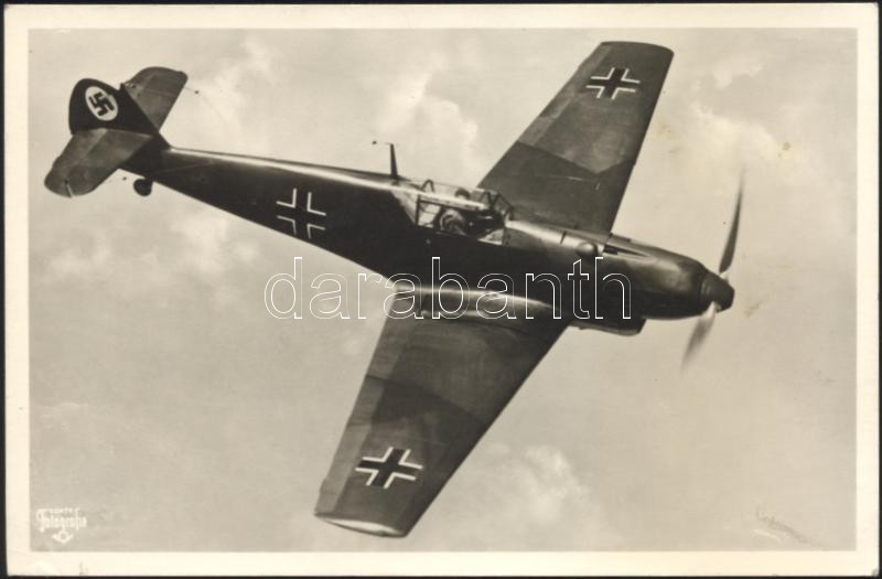 Military WWII, Luftwaffe aeroplane, Jagdeinsitzer Bf. 109 https://www.darabanth.com/hu/182-Gyorsarveres/182.0/Kepeslapok/Katonai-Repulo~400363/Military-WWII-Luftwaffe-aeroplane-Jagdeinsitzer-Bf-109~II607720