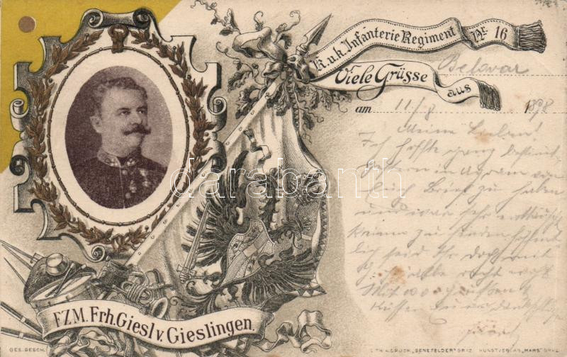 1898 Von Giesligen, infantry regiment nr. 16. litho
