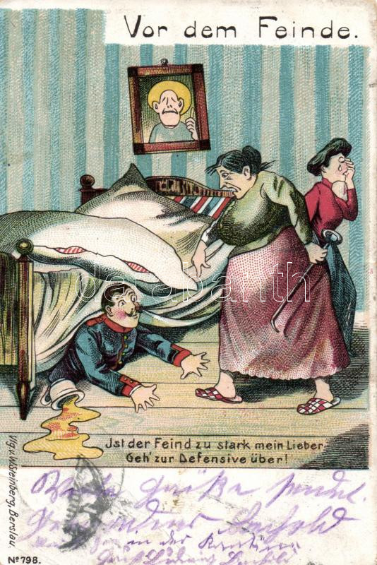 Before the enemy, military humour, litho (b) https://www.darabanth.com/hu/182-Gyorsarveres/182.0/Kepeslapok/Katonai~400361/Before-the-enemy-military-humour-litho-b~II651989