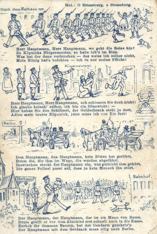 'Herr Hauptmann, Herr Hauptmann' German folk song (EK) https://www.darabanth.com/hu/182-Gyorsarveres/182.0/Kepeslapok/Katonai~400361/Herr-Hauptmann-Herr-Hauptmann-German-folk-song-EK~II650334