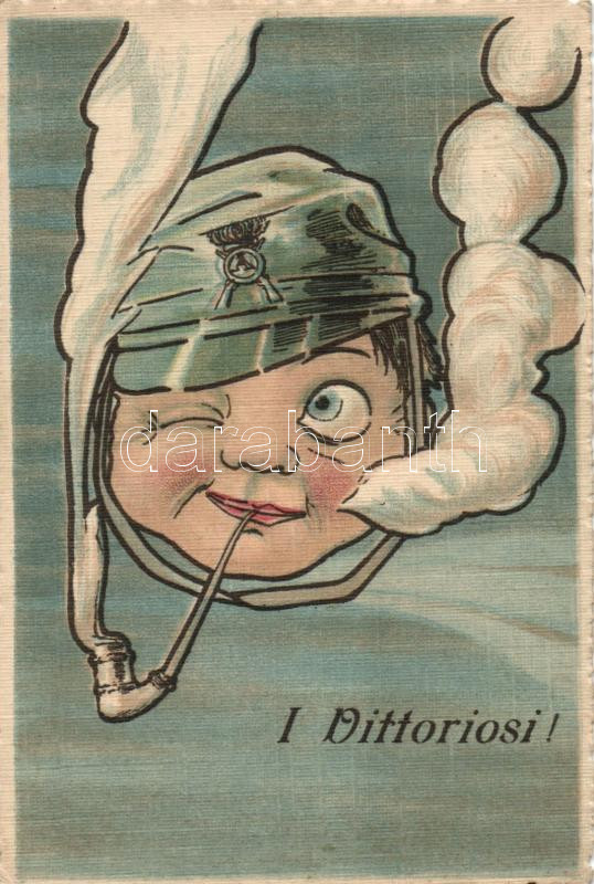 Italian soldier, the victorious, humour (EK) https://www.darabanth.com/hu/182-Gyorsarveres/182.0/Kepeslapok/Katonai~400361/Italian-soldier-the-victorious-humour-EK~II650665