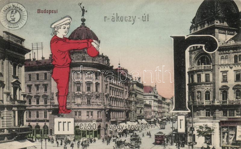 Leírás: Budapest VII. Rákóczi út, gyógyszertár, zálogház, analfabéta teszt