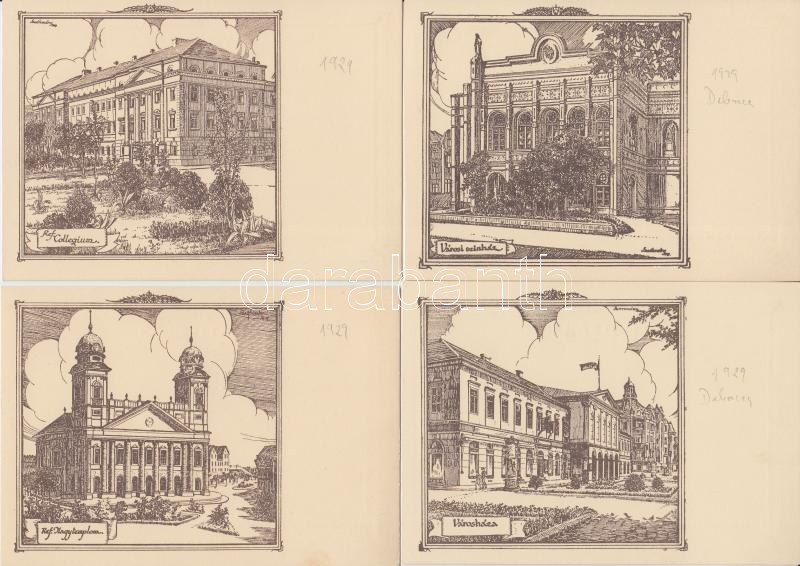Leírás: Debrecen 4 db használatlan, jó állapotú képeslap, az Országos Magyar Dalszövetség sorozata, pinx. Szathmáry