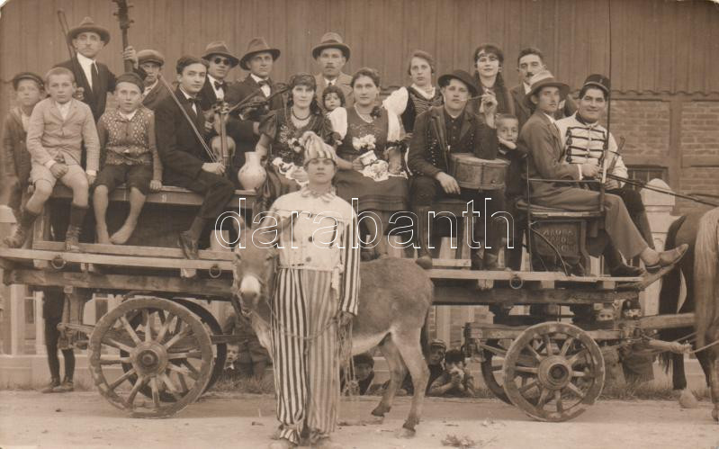 Horse cart with Gypsy musicians, clown with donkey / Miskolci cirkuszi... https://www.darabanth.com/hu/182-Gyorsarveres/182.0/Kepeslapok/Magyarorszag~200006/Horse-cart-with-Gypsy-musicians-clown-with-donkey-Miskolci-cirkuszi-szeker-ciganyzeneszekkel-~II546623