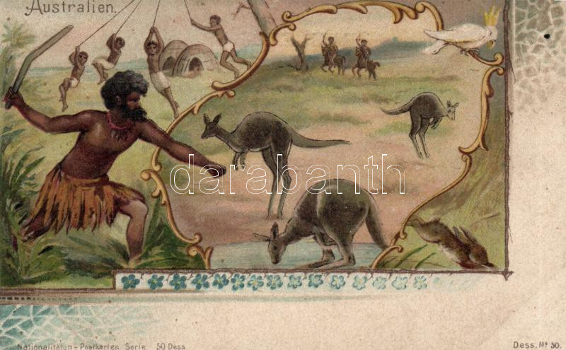 Australian natives and kangaroos, 'Nationalitäten' series li... https://www.darabanth.com/hu/182-Gyorsarveres/182.0/Kepeslapok/Muvesz~400375/Australian-natives-and-kangaroos-Nationalitaten-series-litho~II653046