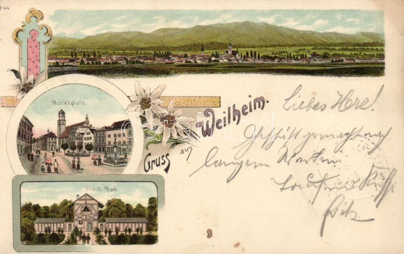 1898 Weilheim, Marktplatz, Stadt Bad / market place, spa, floral Art N... https://www.darabanth.com/hu/182-Gyorsarveres/182.0/Kepeslapok/Nemetorszag~400421/1898-Weilheim-Marktplatz-Stadt-Bad-market-place-spa-floral-Art-Nouveau-litho~II605242