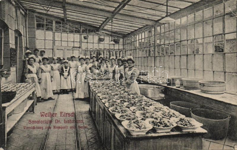 Dresden Weisser Hirsch, the sanatorium of Dr. Lahmann, kitchen, compot... https://www.darabanth.com/hu/182-Gyorsarveres/182.0/Kepeslapok/Nemetorszag~400421/Dresden-Weisser-Hirsch-the-sanatorium-of-Dr-Lahmann-kitchen-compote-and-salad-small-tear~II652425