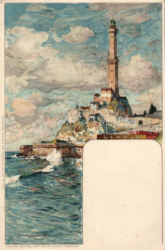 Genova, tower, Velten No. 202. litho s: Manuel Wielandt (EB) https://www.darabanth.com/hu/182-Gyorsarveres/182.0/Kepeslapok/Olaszorszag~400374/Genova-tower-Velten-No-202-litho-s-Manuel-Wielandt-EB~II528696