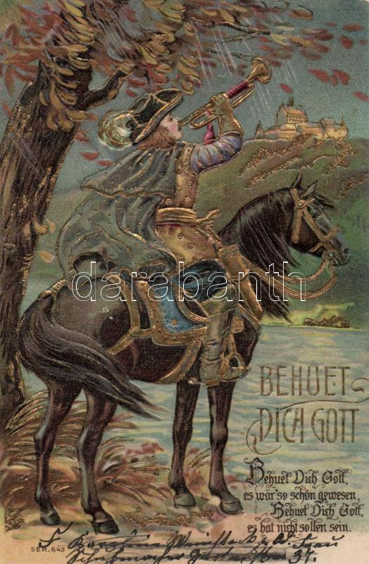 Leírás: German patriotic postcard, 'Behüt dich Gott' Emb. litho