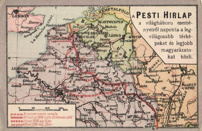 Pesti Hírlap advertisement, Map of the WWI (EK) https://www.darabanth.com/hu/182-Gyorsarveres/182.0/Kepeslapok/Reklam~400384/Pesti-Hirlap-advertisement-Map-of-the-WWI-EK~II570825