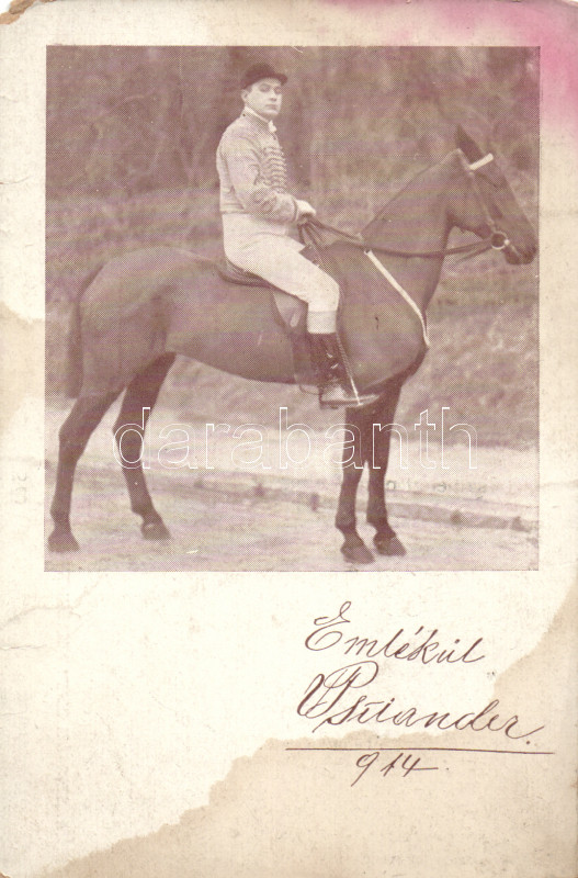 Valdemar Psilander on horseback, 'Színházi Élet melléklete' ... https://www.darabanth.com/hu/182-Gyorsarveres/182.0/Kepeslapok/Szinesz~400394/Valdemar-Psilander-on-horseback-Szinhazi-Elet-melleklete-EM~II577394