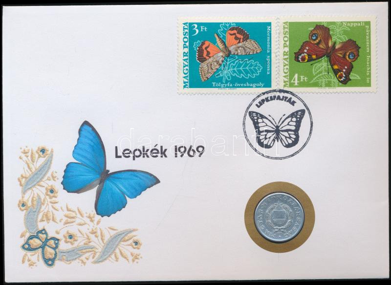 Leírás: 1969. 1Ft "Lepkék 1969" érmés bélyeges boríték alkalmi bélyegzővel és bélyegpárral T:2-