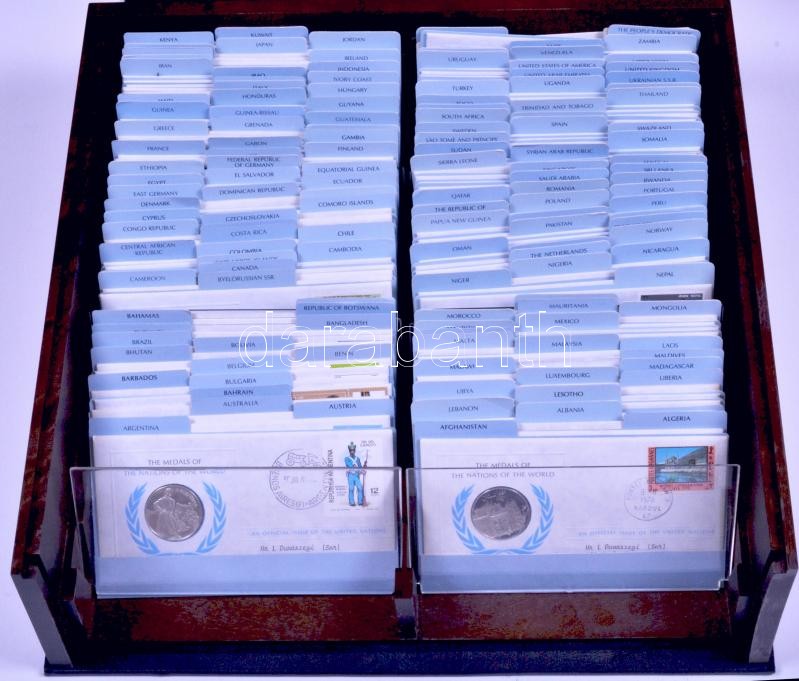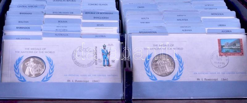 Very nice coin letter collection of "The Medals Of The Nations Of The World" with first day of issue stamps! 144 pieces of different letters with sterling silver proof coins, with caertificate and with description in original case! C:PP