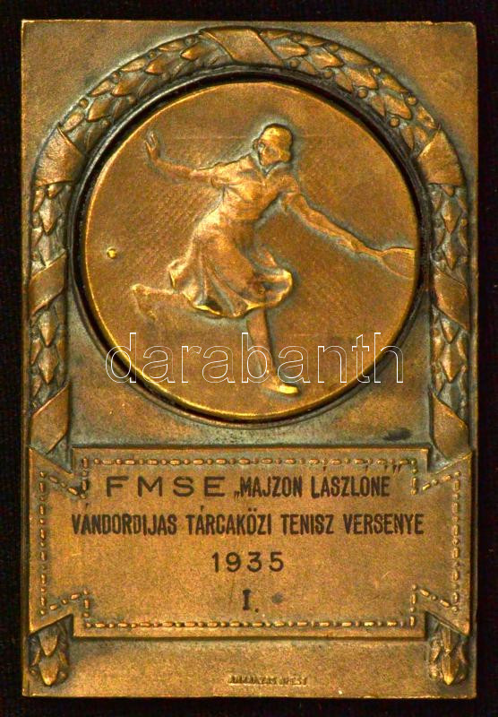 Leírás: 1935. "F.M.S.E - Majzon Lászlóné / Vándordíjas Tárcaközi Tenisz Versenye / 1935 / I." Br díjplakett. Szign.: ARKANZAS BPEST (60x40mm) T:2