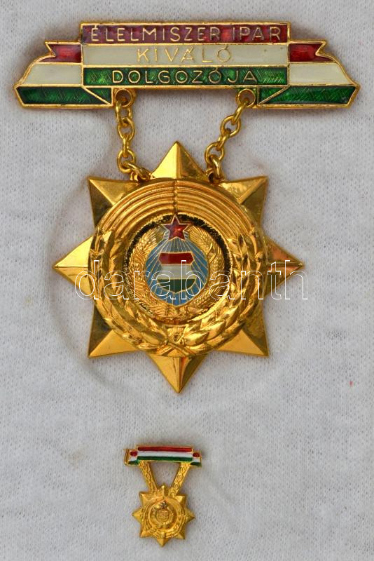 ~1965. "Élelmiszer Ipar Kiváló Dolgozója" zománcozott kitünt... https://www.darabanth.com/hu/182-Gyorsarveres/182.0/Numizmatika/Falerisztika-Kituntetesek-jelvenyek~400437/7E1965-Elelmiszer-Ipar-Kivalo-Dolgozoja-zomancozott-kituntetes-miniaturrel-disztokban-T1~II652148