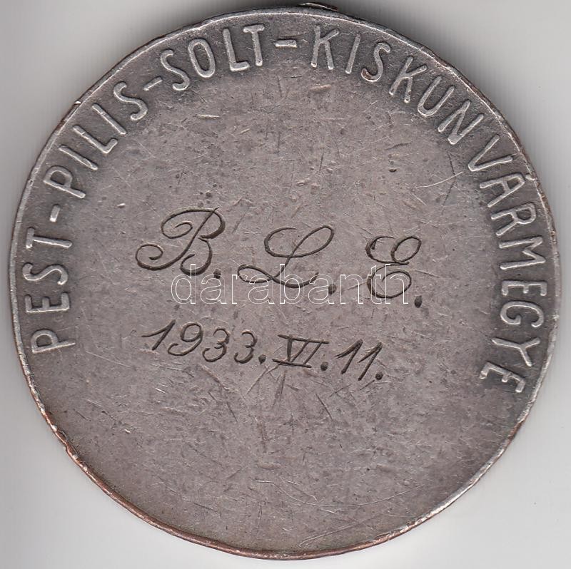 Leírás: Maugsch Gyula (1882-1945) 1929. "Pest-Pilis-Solt-Kiskun Vármegye / B.L.E 1933.VII.11" fém cserkészérem fülhiánnyal T:2-