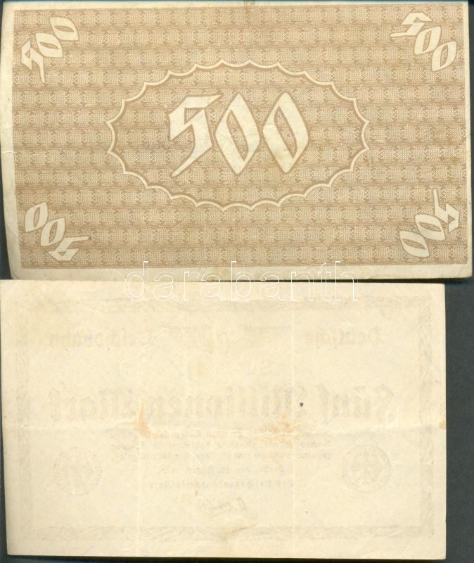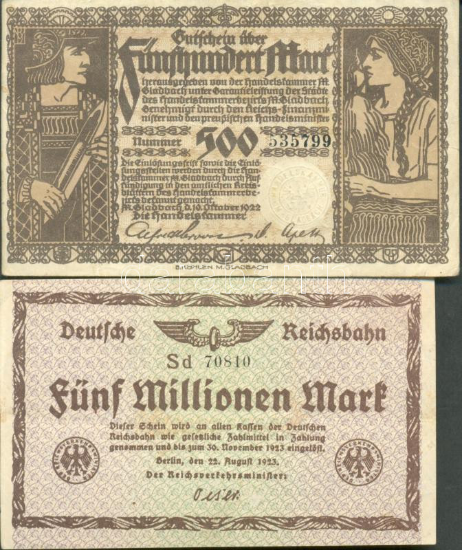 Leírás: Német Birodalom/Weimari Köztársaság/München-Gladbach 1922. 500M + /Berlin 1923. 5.000.000M T:III