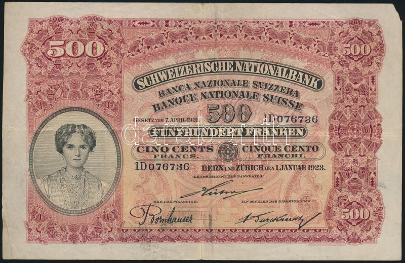 Switzerl... https://www.darabanth.com/hu/182-Gyorsarveres/182.0/Numizmatika/Kulfoldi-bankjegyek~400432/Svajc-1923-500Fr-alairas-August-Bruckhardt-TIII-sarokhiany-3Cbr3ESwitzerland-1923-500-Francs~II601642