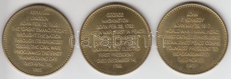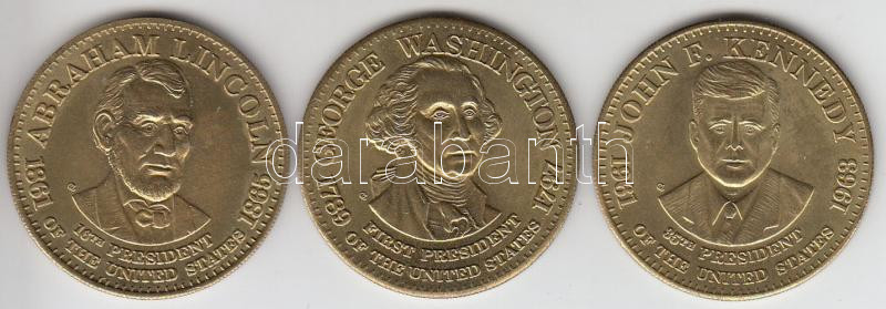Amerikai Egyesült Államok DN. 3db klf elnöki emlékérem "Lincoln" + "Washington" + "J.F. Kennedy" T:2