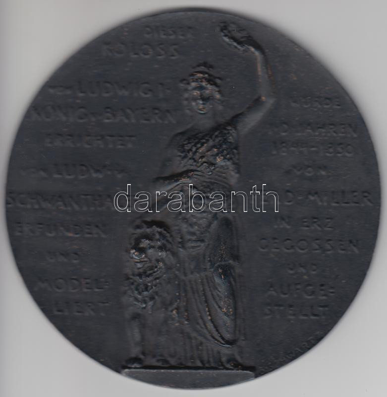 German States / Bavaria ~1850. Bavaria Statue in Munich commemorative cast Br plaque. Sign.: S:SCHWARTZ (d=114mm) C:VF