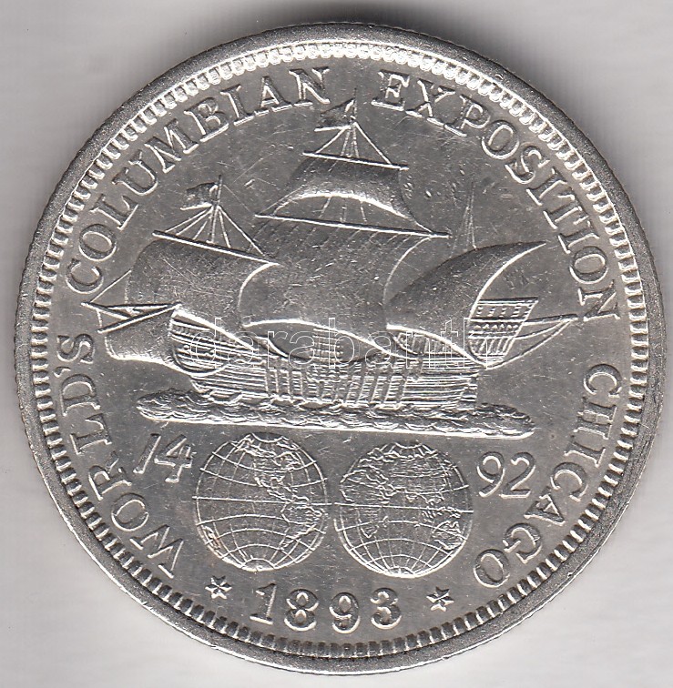 Leírás: Amerikai Egyesült Államok 1893. 1/2$ Ag "Kolumbusz / Santa Maria" T:2