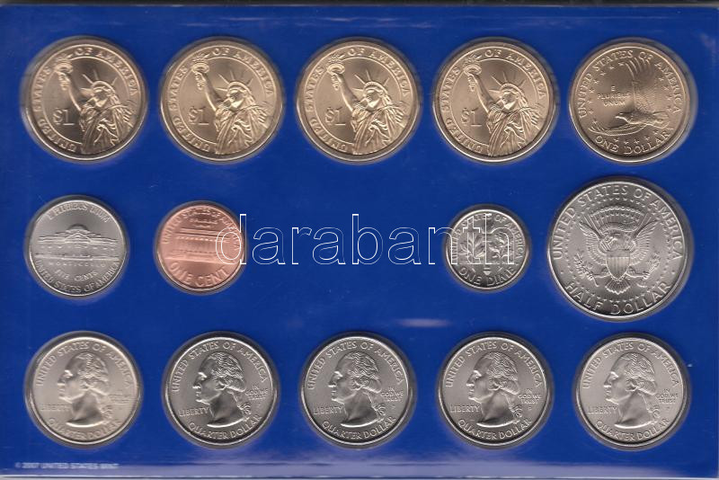 Amerikai Egyesült Államok 2007P 1d - 1$ Philadelphiai pénzverde érme szett 14db klf érmével T:1