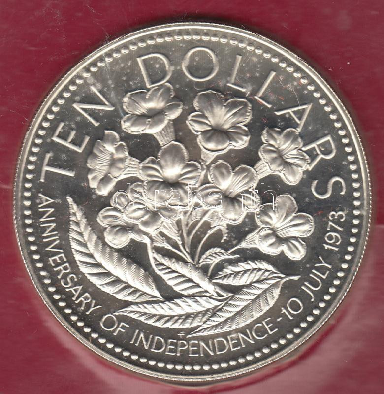 Bahamák 1977. 10$ Ag(0.925)/49,1g "Függetlenség" eredeti vákuumcsomagban és dísztokban T:PP