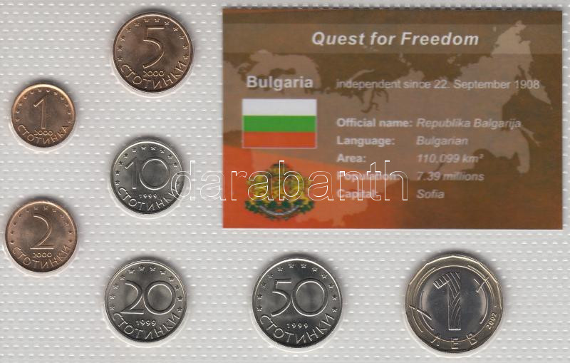 Bulgaria 1999-2... https://www.darabanth.com/hu/182-Gyorsarveres/182.0/Numizmatika/Kulfoldi-fem-es-ezustpenzek~400433/Bulgaria-1999-2002-1s--1L-7klf-laminalt-szettben-T1-3Cbr3EBulgaria-1999-2002-1-stotinka--1-Lev~II652734