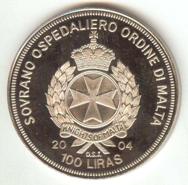 Leírás: Máltai Lovagrend 2004. 100L "Lengyelország az EU-ban" T:PP tanúsítvánnyal