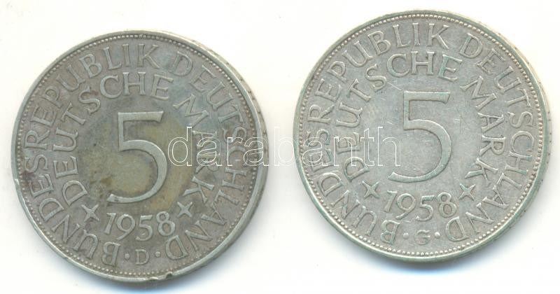 Leírás: NSZK 1958D-G 5M Ag (2xklf) T:2,2-