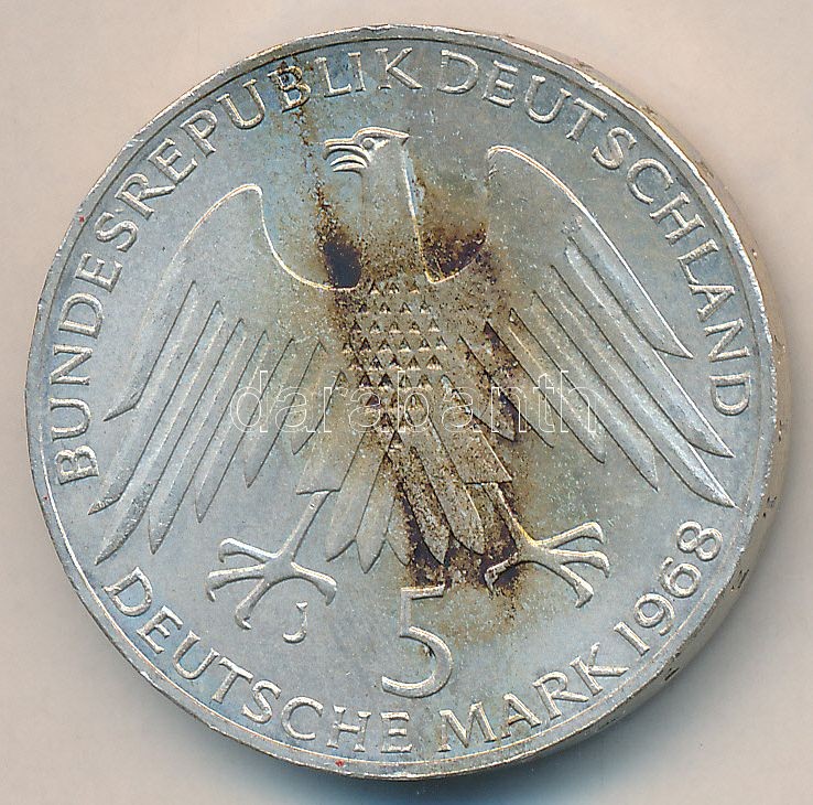 GFR 1968J 5 Mark... https://www.darabanth.com/hu/182-Gyorsarveres/182.0/Numizmatika/Kulfoldi-fem-es-ezustpenzek~400433/NSZK-1968J-5M-Ag-Friedrich-Raiffeisen-T2-3Cbr3EGFR-1968J-5-Mark-Ag-Birth-of-Friedrich-Raiffeisen~II638097