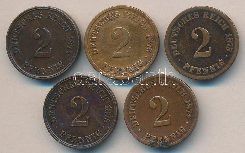 Német Birodalom 1874-76. 2Pf (5x) klf verdejelek T:2,2-