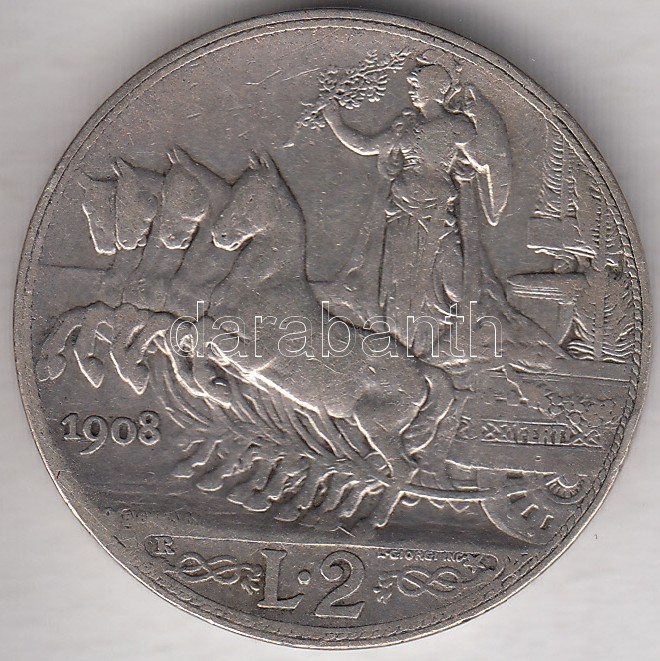 Italy 1908... https://www.darabanth.com/hu/182-Gyorsarveres/182.0/Numizmatika/Kulfoldi-fem-es-ezustpenzek~400433/Olaszorszag-1908-2L-Ag-II-Viktor-Emanuel-T2--3Cbr3EItaly-1908-2-Lire-Ag-Vittorio-Emanuelle-II~II654168