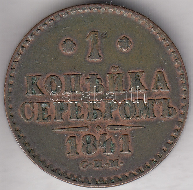 Russia 1841.CPM 1 kopeks Cu C:XF,VF https://www.darabanth.com/hu/182-Gyorsarveres/182.0/Numizmatika/Kulfoldi-fem-es-ezustpenzek~400433/Oroszorszag-1841CPM-1k-Cu-T2-2--3Cbr3ERussia-1841CPM-1-kopeks-Cu-CXF-VF~II654084