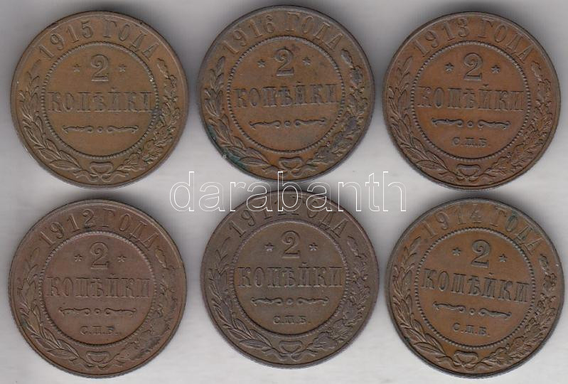 Russia 1911-1916. 2 kopeks C... https://www.darabanth.com/hu/182-Gyorsarveres/182.0/Numizmatika/Kulfoldi-fem-es-ezustpenzek~400433/Oroszorszag-1911-1916-2k-Cu-6x-klf-T2-3Cbr3ERussia-1911-1916-2-kopeks-Cu-6x-different-CXF~II654088