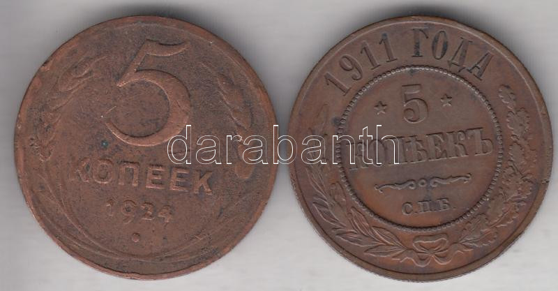 Oroszország 1911. 5k Cu + 1924. 5k Cu T:2,3