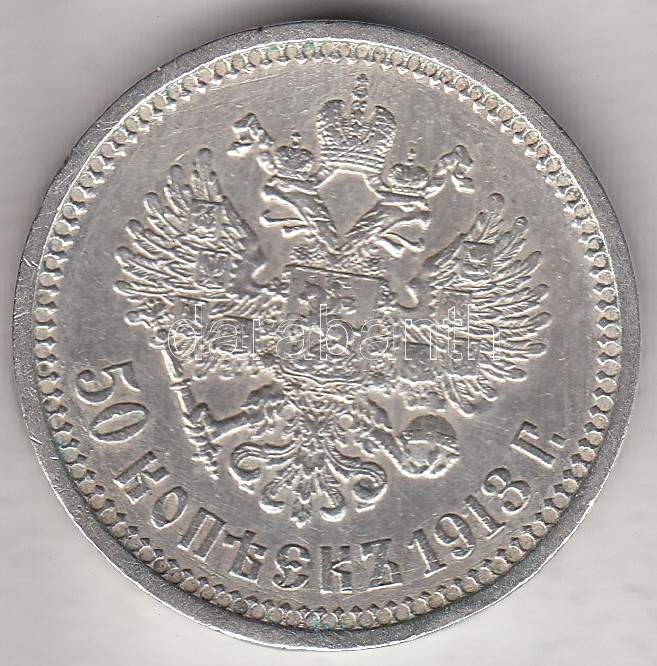 Russia 1913. 5... https://www.darabanth.com/hu/182-Gyorsarveres/182.0/Numizmatika/Kulfoldi-fem-es-ezustpenzek~400433/Oroszorszag-1912-50k-Ag-II-Miklos-T2-2--3Cbr3ERussia-1913-50-Kopeks-Nicholas-II-Ag-CXF-VF~II654471