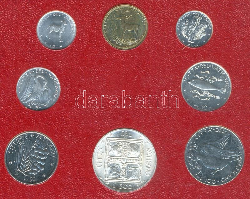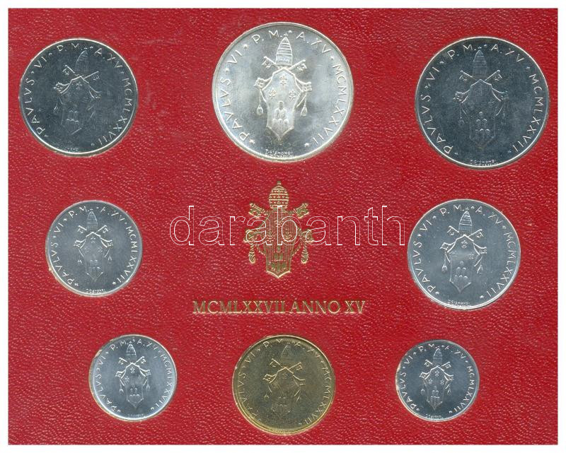 Vatican 1977. 1 Lira - 500 Lire collector coin set with 8 pieces of different value in original paper box C:UNC