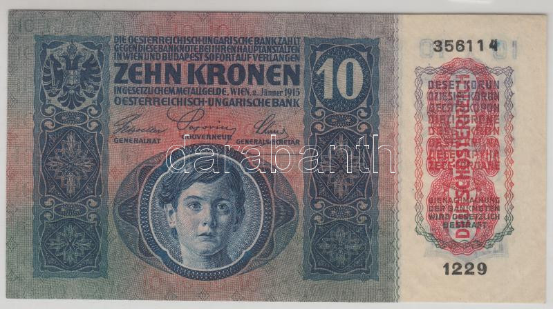 Leírás: 1915. 10K függőleges "Deutschösterreich" felülnyomással T:I-