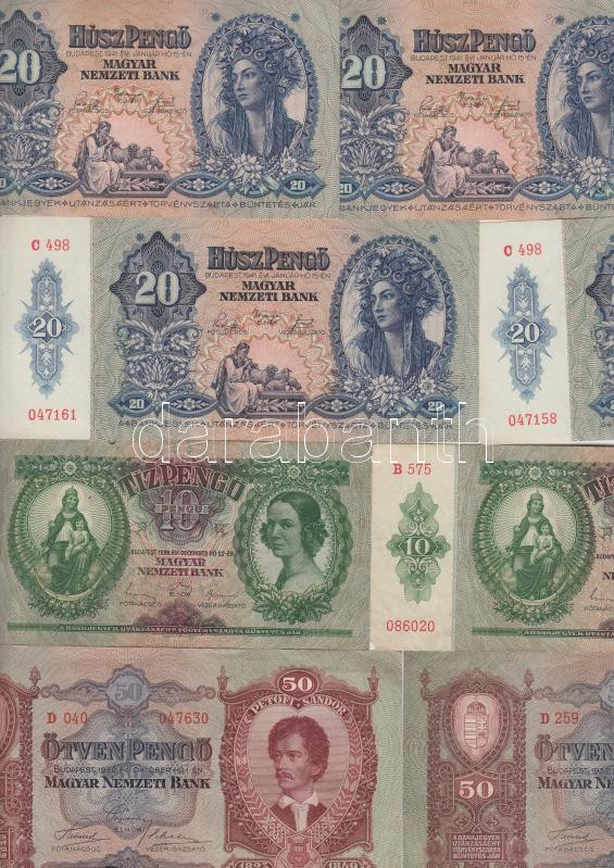 Leírás: 1932-1941. 10P (18x) + 20P közte 10db hajtatlan, egymás utáni és közeli sorszámú + 10db hajtatlan, de tinta miatt összetapadt + 50P (2x) T:vegyes