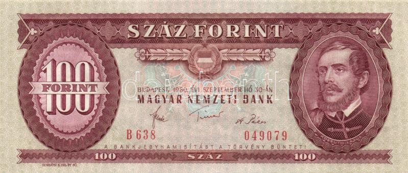 Leírás: 1980. 100Ft (4x) egymást követő és egyugrású sorszámmal T:I