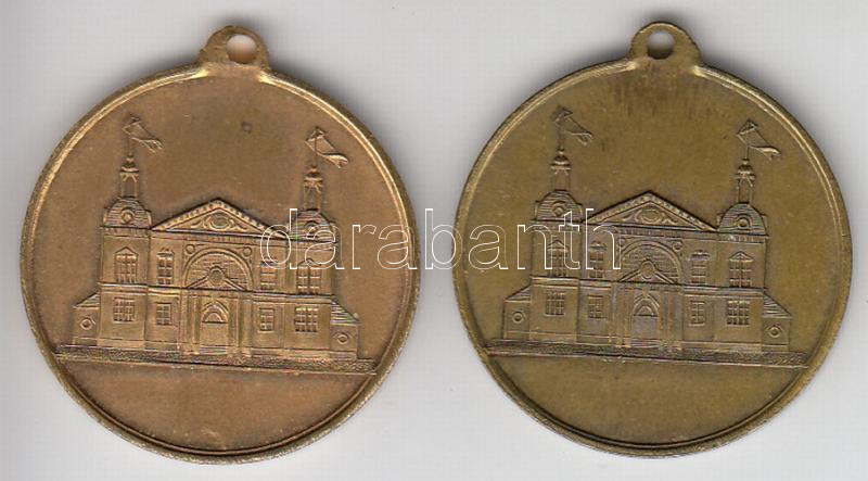 Leírás: 1890. "Az Alföldi és Délmagyarországi Általános Kiállítás Emlékéül Arad" sárgaréz emlékérem (30mm) (2x) T:2
