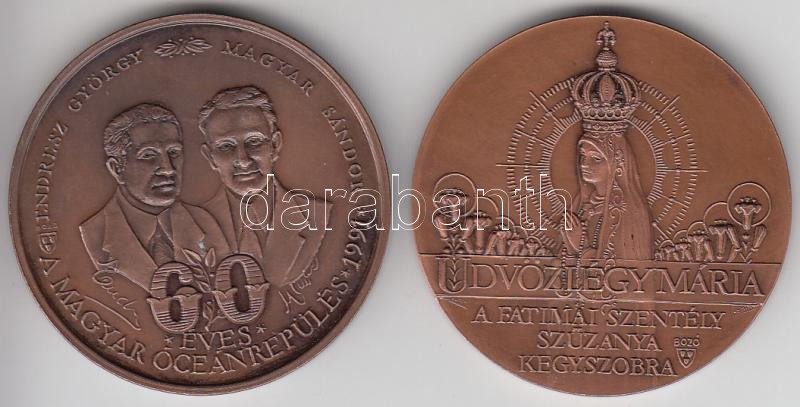 Leírás: Bozó Gyula (1913-2004) 1991. "60 éves a Magyar Óceánrepülés" + 1994. "Nemzeti Engesztelő zarándoklat / Fatimai szentély" Br emlékérmek T:1-