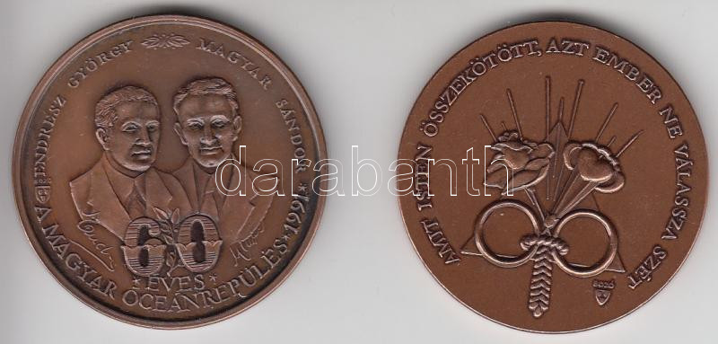 Bozó Gyula (1913-2004) 1991. "60 éves a Magyar Óceánrepülés"... https://www.darabanth.com/hu/182-Gyorsarveres/182.0/Numizmatika/Magyar-emlekveretek~400430/Bozo-Gyula-1913-2004-1991-60-eves-a-Magyar-Oceanrepules-plus-DN-Hazassagkotes-Br-emlC3~II650243