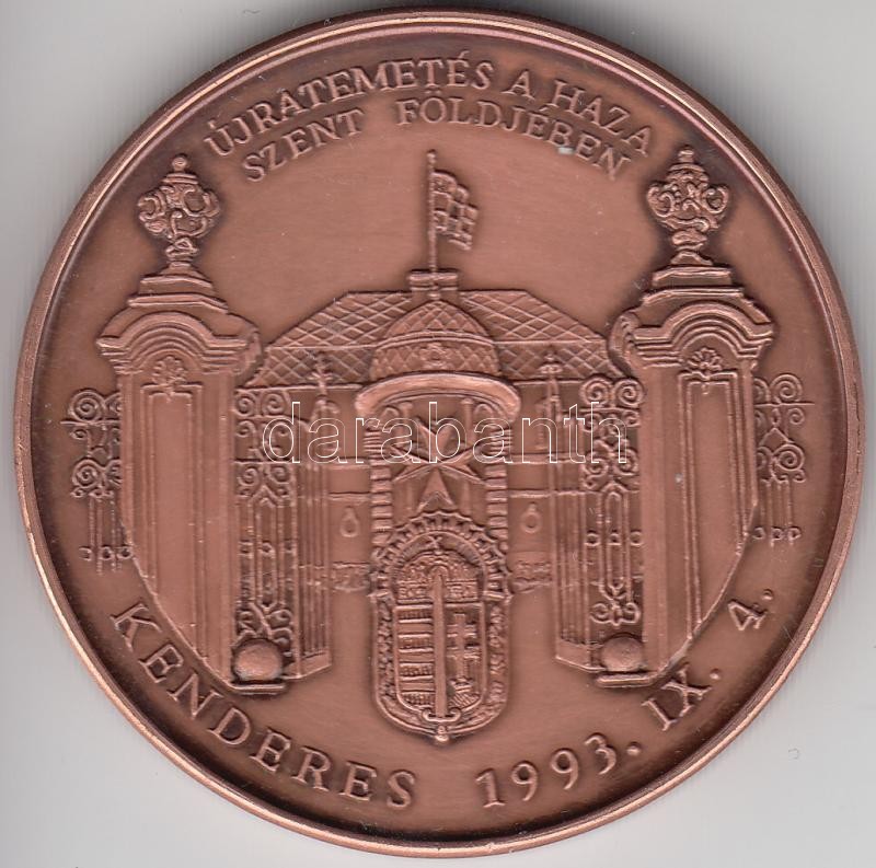 Bozó Gyula (1913-2004) 1993. "Vitéz Nagybányai Horthy Miklós újra... https://www.darabanth.com/hu/182-Gyorsarveres/182.0/Numizmatika/Magyar-emlekveretek~400430/Bozo-Gyula-1913-2004-1993-Vitez-Nagybanyai-Horthy-Miklos-ujratemetese-Kenderesen-Br-emle~II650246