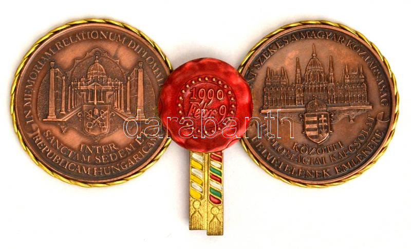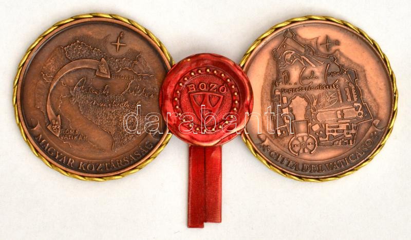 Leírás: Bozó Gyula (1913-2004) 1999. "A Szent Szék és a Magyar Köztársaság közötti diplomáciai kapcsolat felvételének emlékére" dekoratív Br emlékérem pár T:1