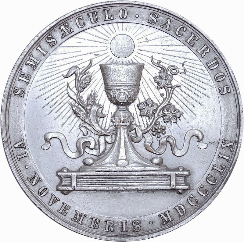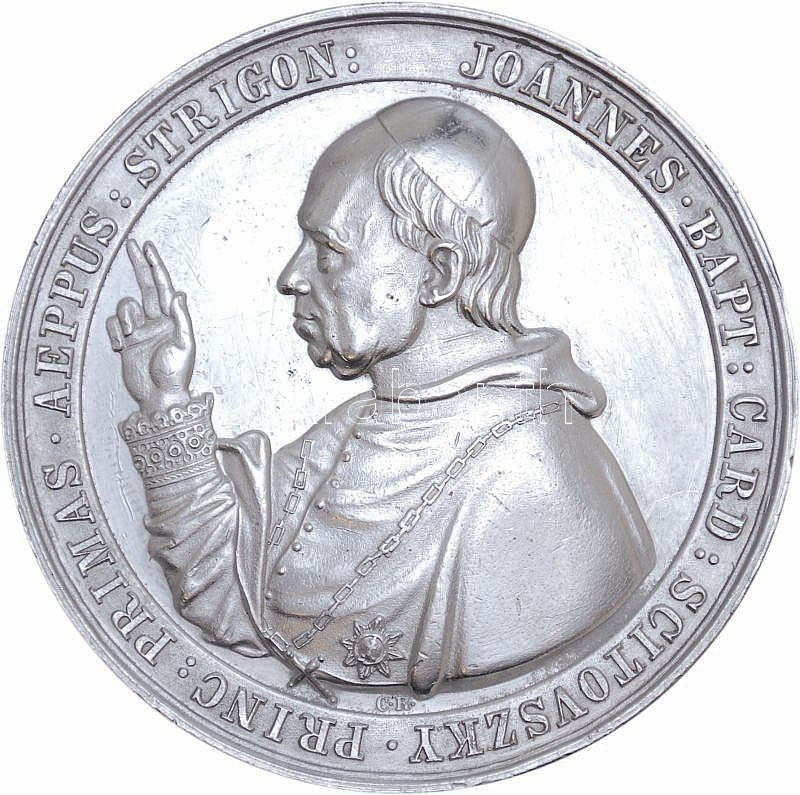 Hungary 1859. 50th Anniversary of the ordination of Archbishop János Scitovszky Ag medallion. "OANNES. BAPT: CARD: SCITOVSZKY. PRINC: PRIMAS. AEPPUS: STRIGON: / SEMISAECULO. SACERDOS VI. NOVEMBRIS. MDCCCLIX." Sign.: Carl Radnitzky (45mm/25.66g) C:AU small edge error